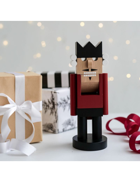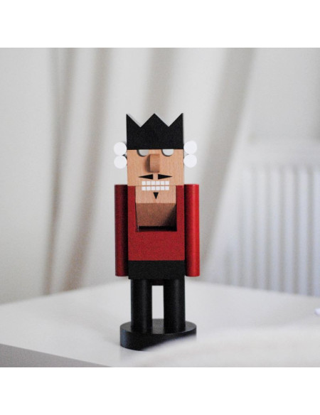 Meet the Nutcracker King. A royal chap, standing tall and dressed in red.