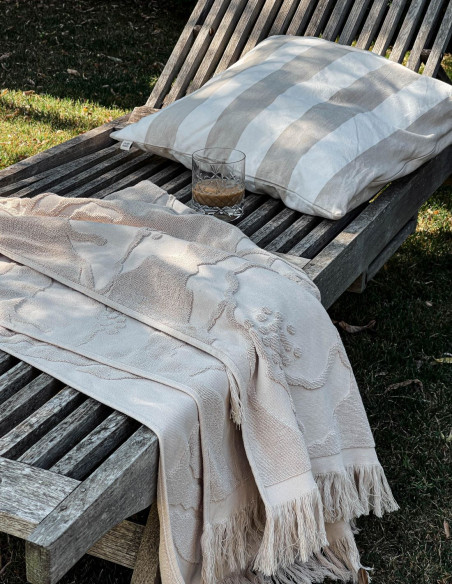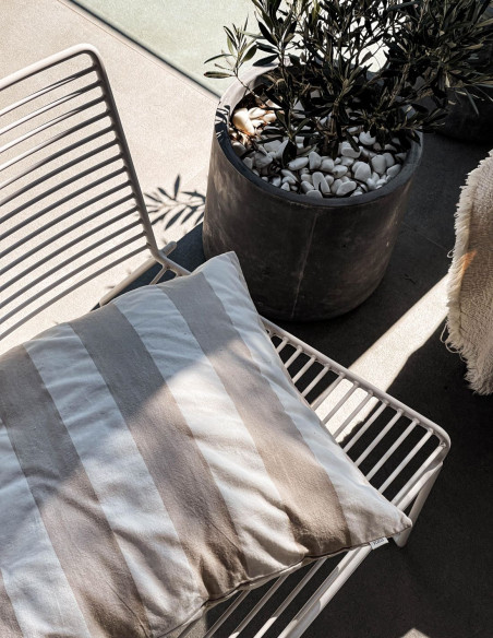 Made from 100% soft, breathable cotton, it features a classic beige and white stripe pattern that blends beautifully into any interior or outdoor setting. Perfect for layering on your sofa, bed, or terrace lounge, this cushion cover brings natural texture and laid-back elegance to your home.