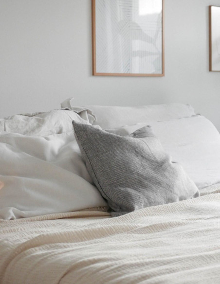 An elegant decorative linen pillow case with a monochromatic look adds a touch of minimalism and natural warmth to your space.