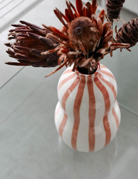 Prior to first use, all pieces should be washed by hand in hot soapy water, well rinsed and allowed to air dry. To maintain the integrity of the pieces (i.e., colour, glaze), dishwasher use is not recommended. The base of jugs, mugs and vases may initially sweat. This is normal, and will decrease over time. Please protect delicate surfaces that may be affected by watermarks. If using a vase or jug to hold flowers, please change the water daily. Some marks in the glaze are natural and expected, as is some crazing. This will not affect the use or durability of the pieces.