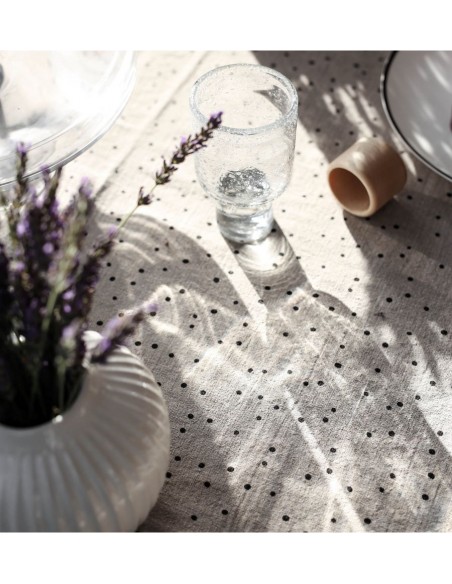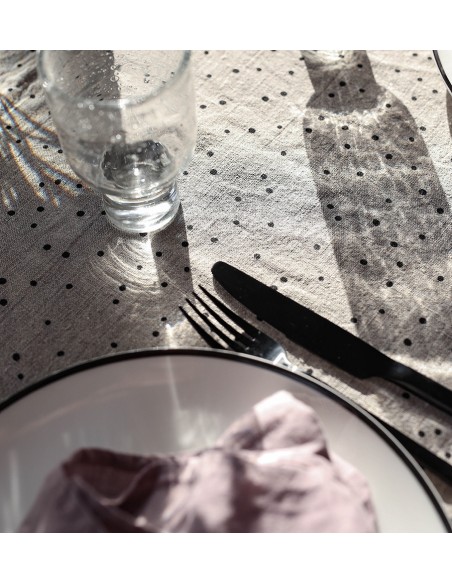 This linen tablecloth brings a sophisticated, organic charm to your dining table. With its soft texture and subtle color, it beautifully balances the coasters and tabletop, creating a warm, elegant look. It effortlessly coordinates with napkins, plates, and glasses, setting the tone for an elegant and enjoyable dining experience.