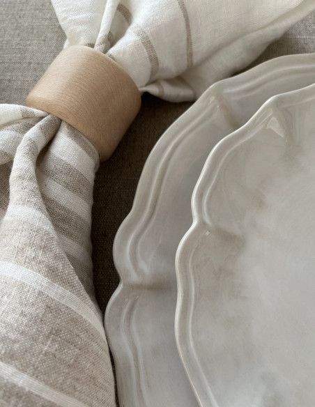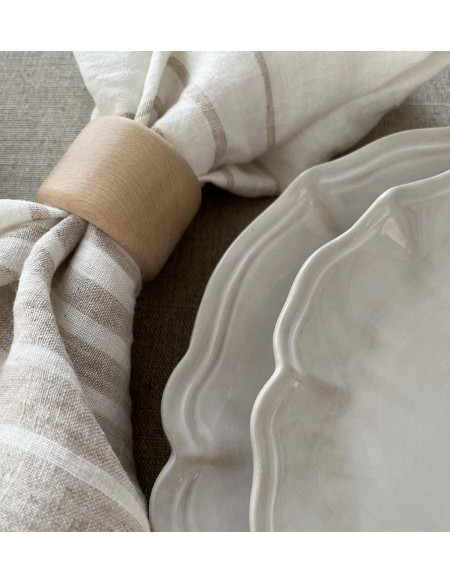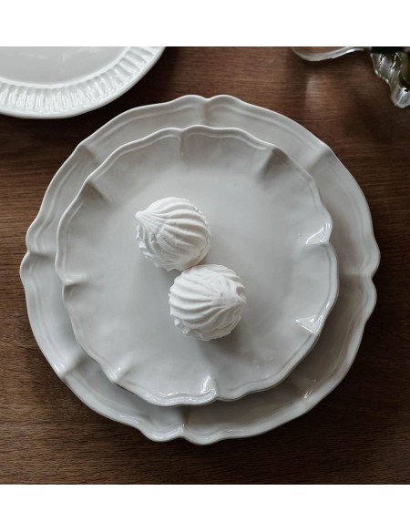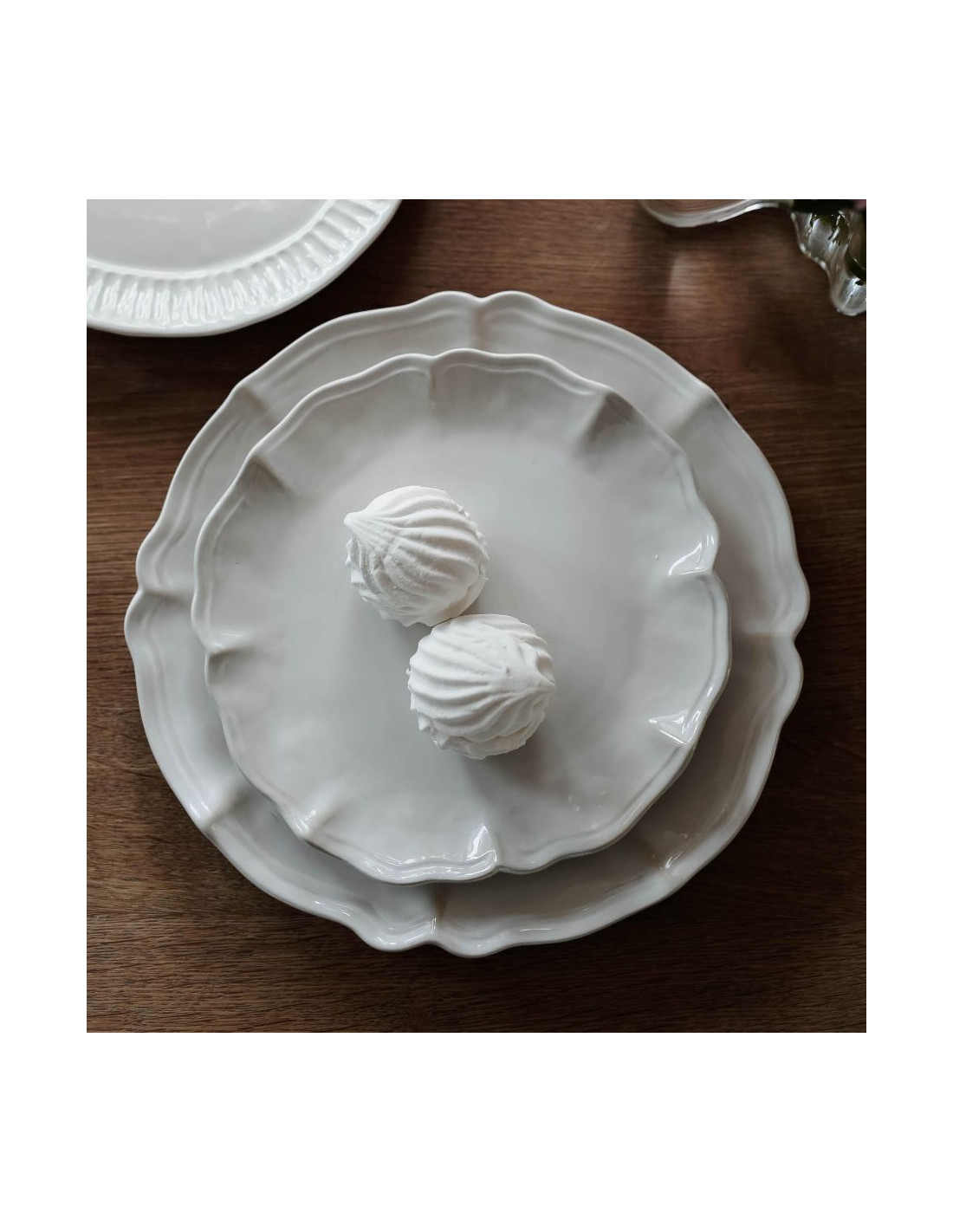 The Judith dinner plate offers a beautiful, rustic charm, ideal for both everyday meals and special occasions. Crafted from stoneware, it features a handmade look with a gently uneven surface that adds a unique, organic character. Its simple, elegant design and natural shape create a perfect frame for any dish, from casual pasta to more elaborate meat or fish courses.