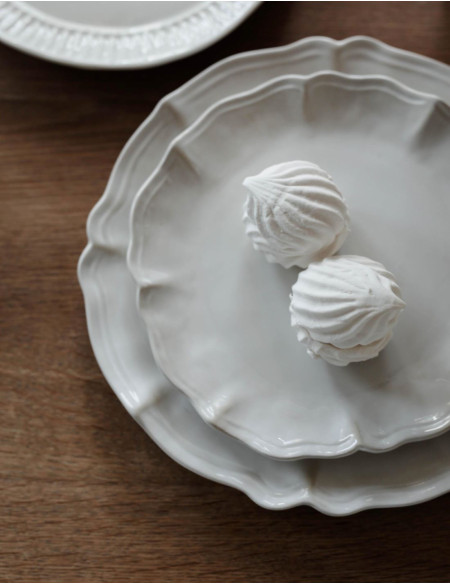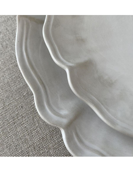 The Judith plate offers a beautiful, rustic charm, ideal for both everyday meals and special occasions. Crafted from stoneware, it features a handmade look with a gently uneven surface that adds a unique, organic character. Its simple, elegant design and natural shape create a perfect frame for any dish, from casual pasta to more elaborate courses.